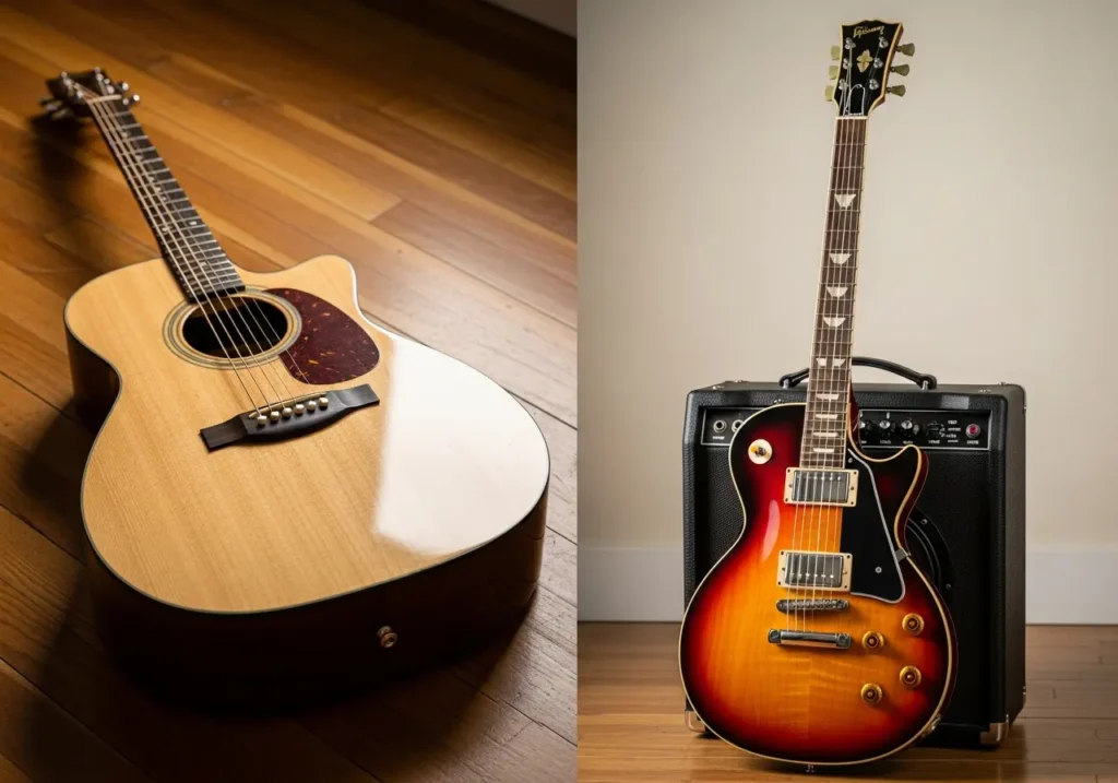 Acoustic guitars are often the safest first choice: no amp is required, and rhythm fundamentals improve quickly.
